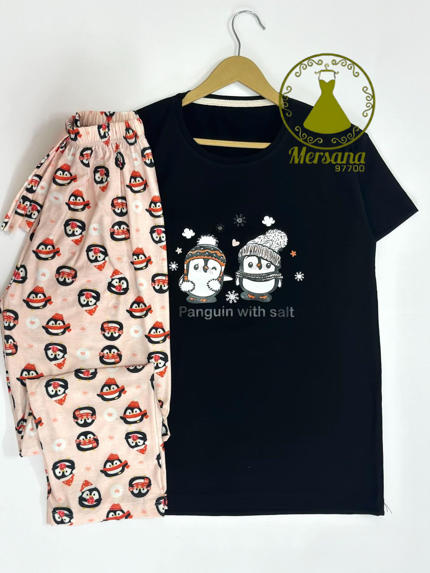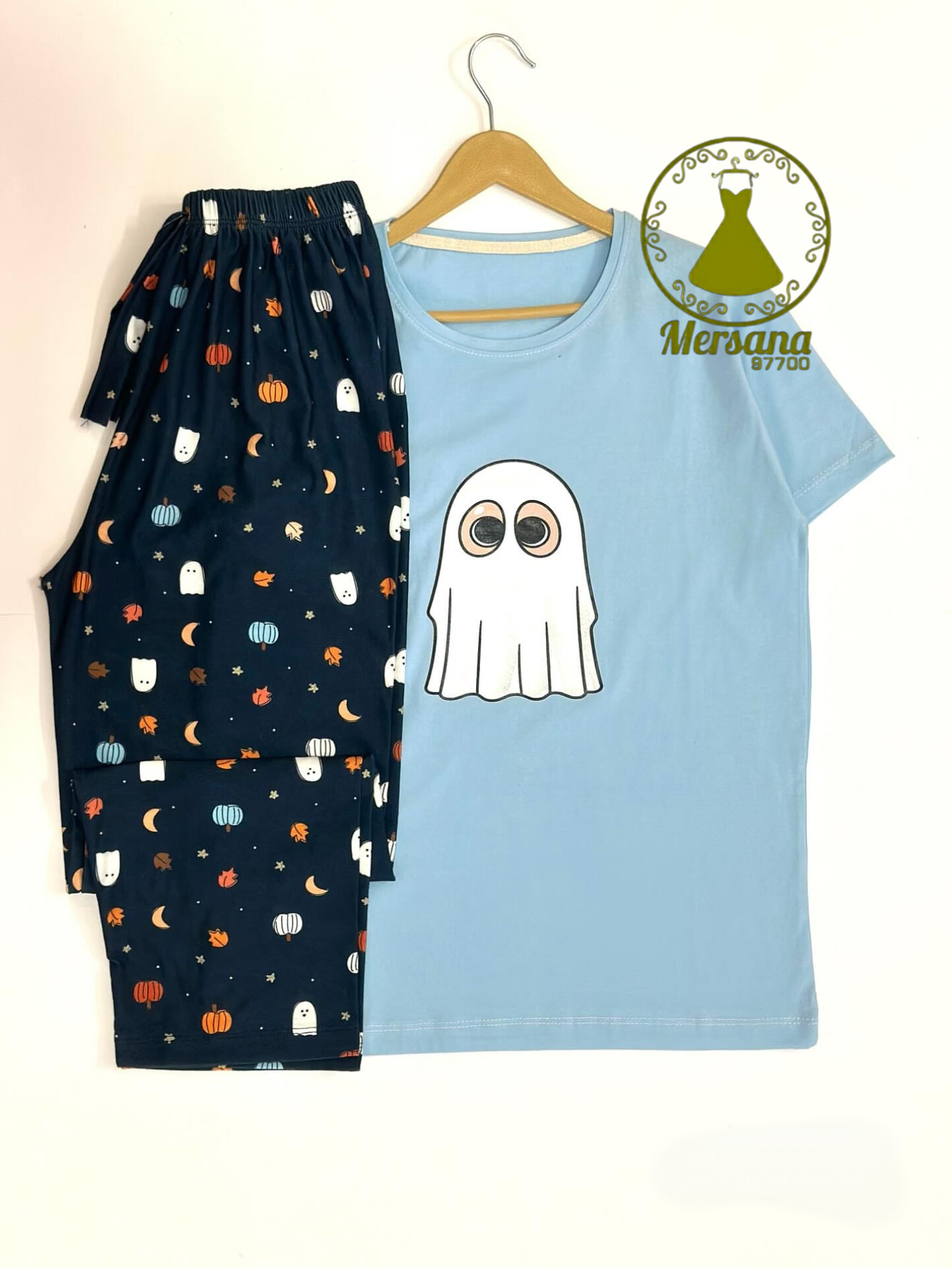 ست تیشرت و شلوار. جنس نخ پنبه. سایز فری 38 تا 44. دور سینه 100 دور ران 58 دور کمر 105قد شلوار 95 قد تیشرت 64