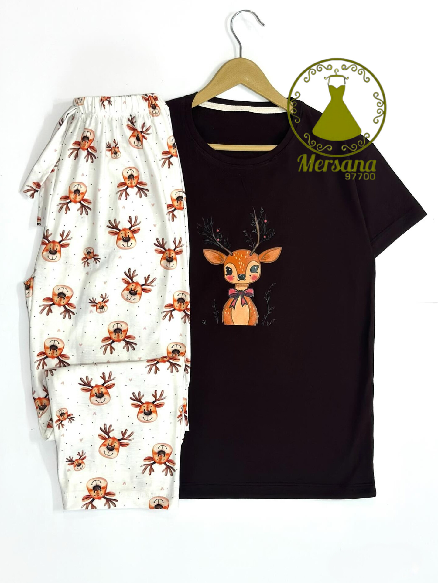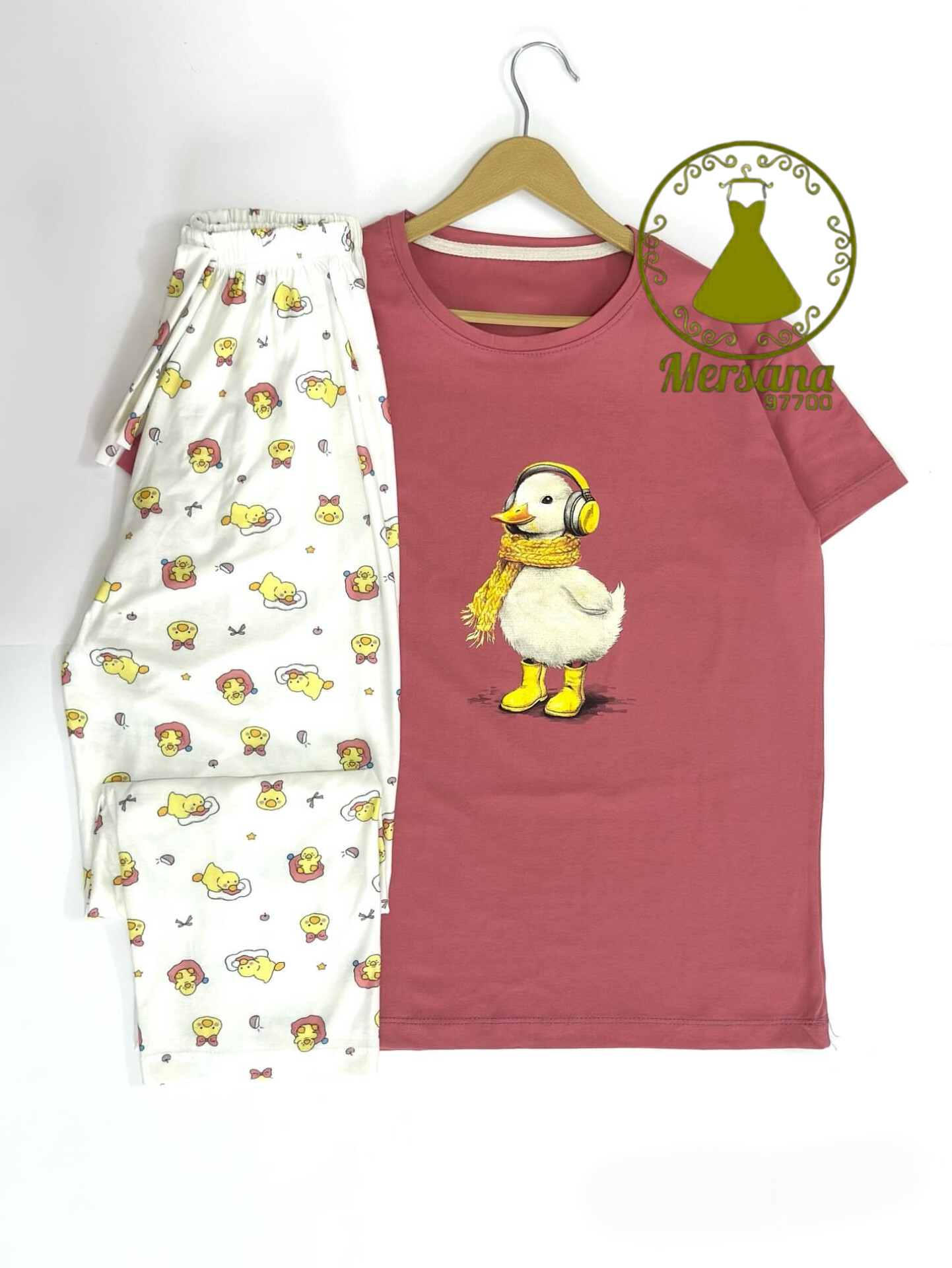 ست تیشرت و شلوار. جنس نخ پنبه. سایز فری 38 تا 44. دور سینه 100 دور ران 58 دور کمر 105قد شلوار 95 قد تیشرت 64