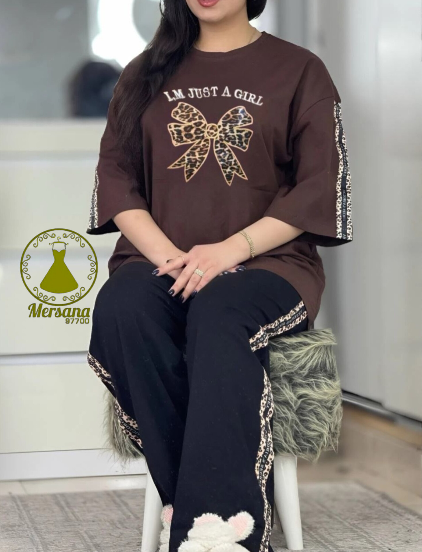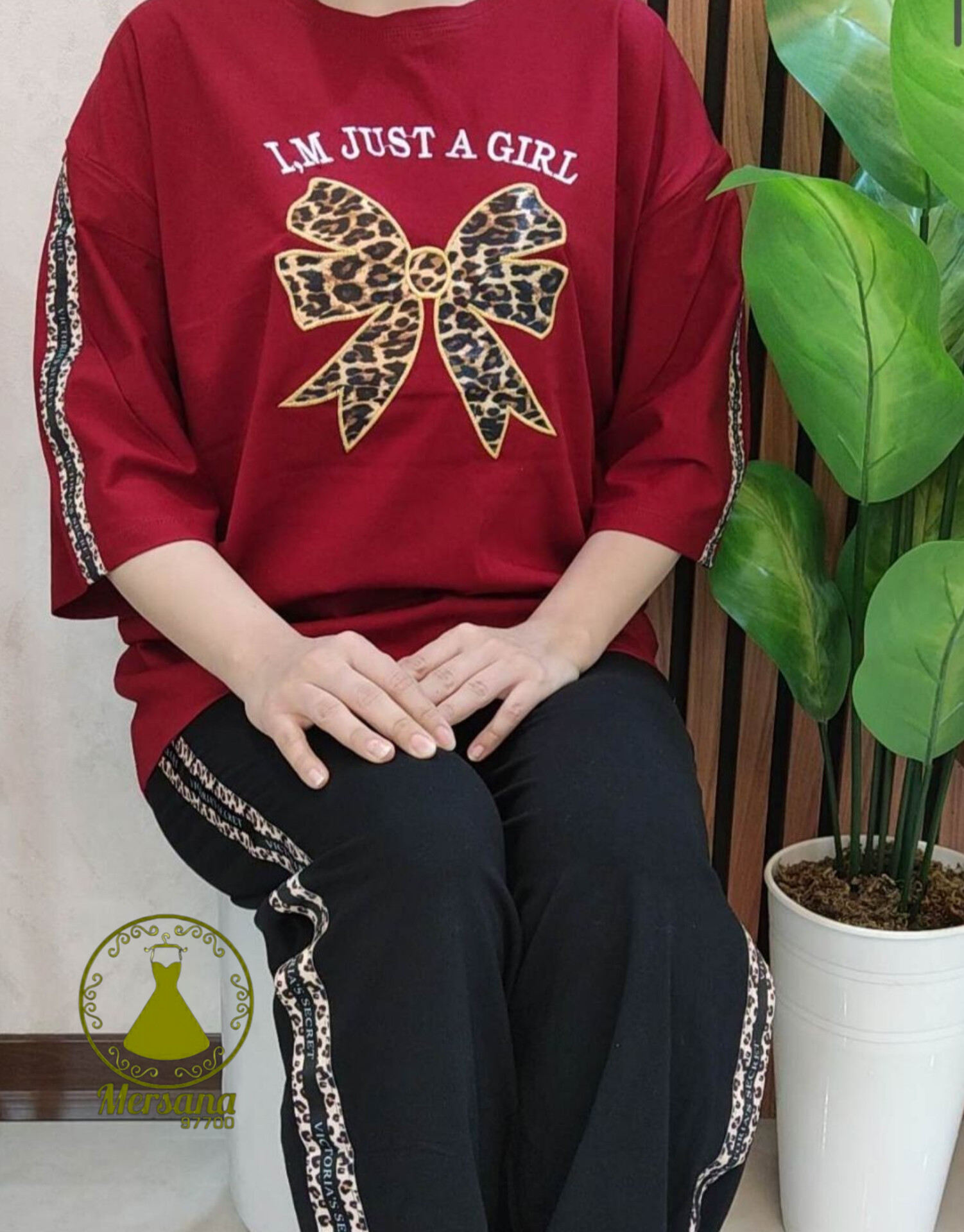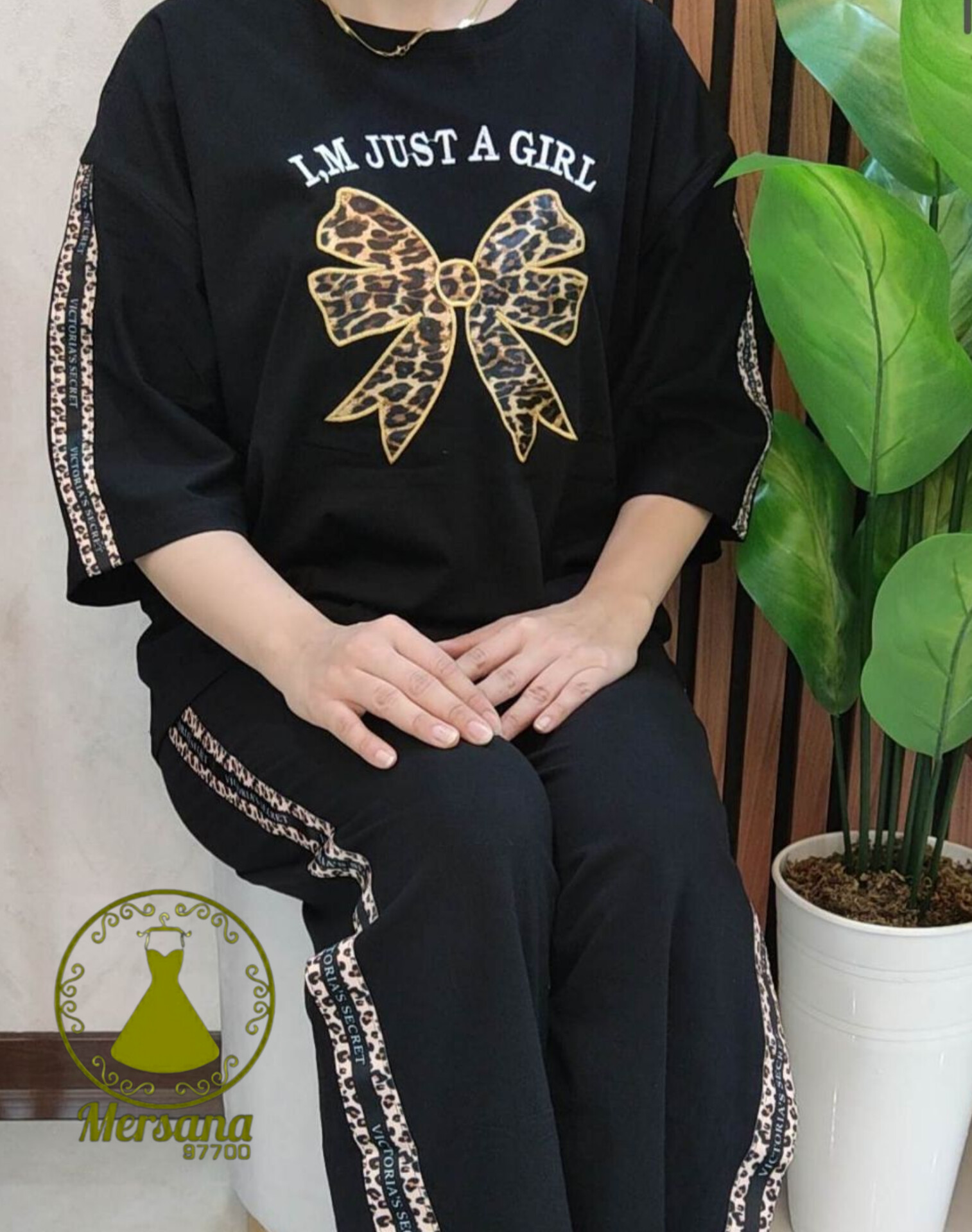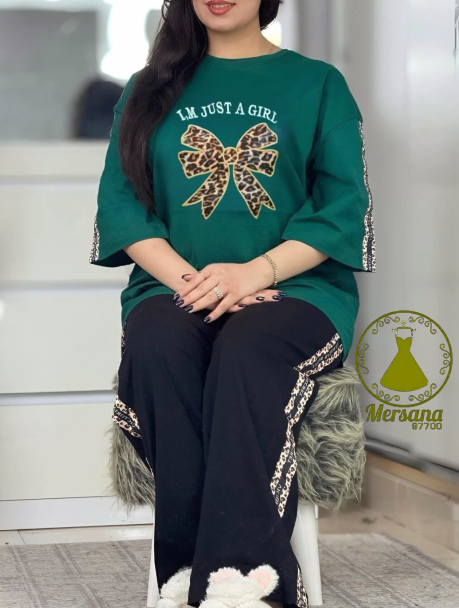 جنس پنبه سوپر درجه 1                            سایز فری 38 تا 48                                  دور سینه 120 /قد تیشرت 73 /قد از سرشانه 44/قد شلوار 100/دور ران 66/دور باسن 106.    اندازه ها بدون کشسانی گرفته شده