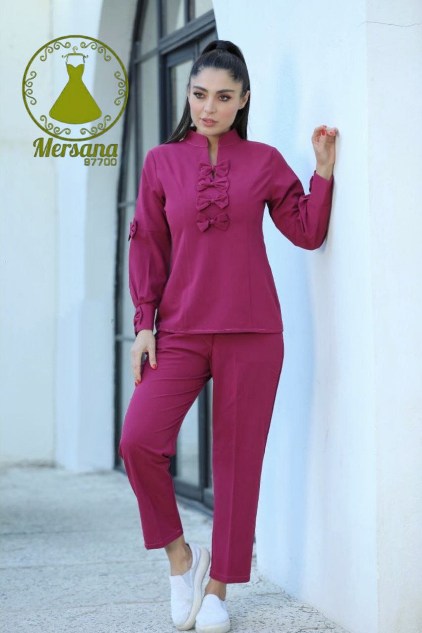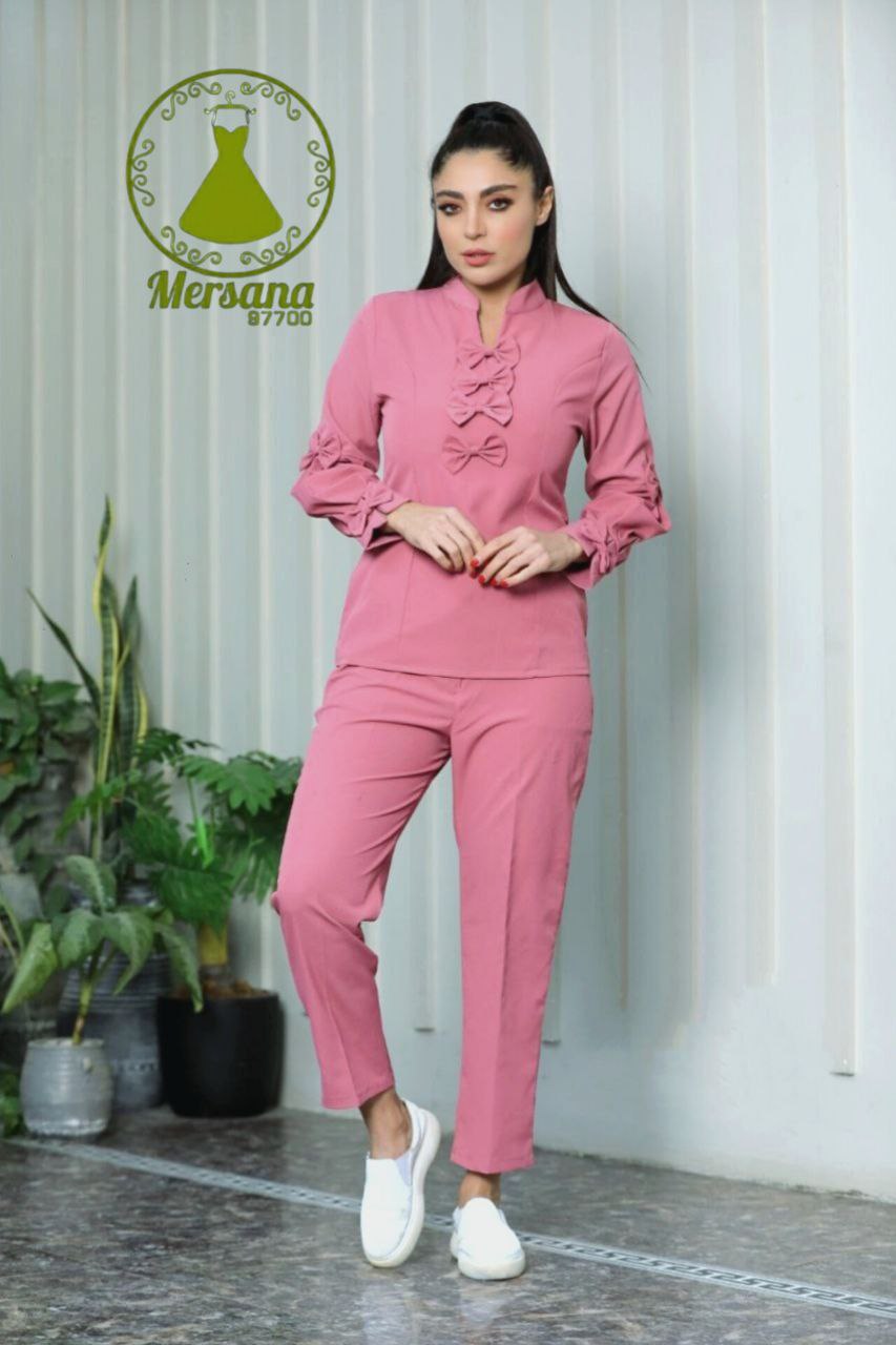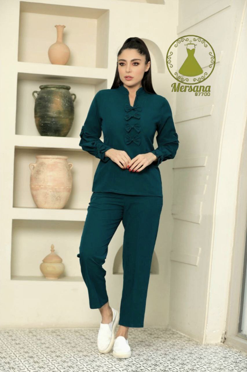 ست تونیک شلوار یقه سه سانت چهار پاپیون. جنس : Casio قد کار ۶۵ شلوار ۹۵. سایز فری 38 تا 42